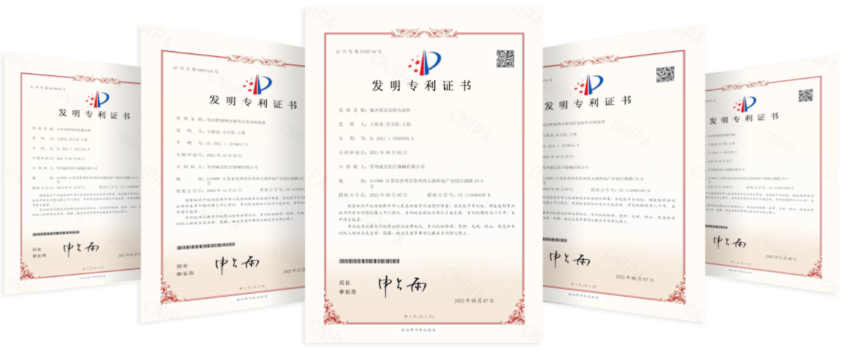 公司自成立以來陸續通過了 ISO13485、 歐盟 CE、巴西 ANVISA、美國FDA、印度、伊朗、韓國、沙特等國的質量管理體系認證,獲得國家專利100項,產品遠銷30多個國家和地區。公司陸續被授予江蘇省高新技術企業、江蘇省科技型中小企業、江蘇省民營科技企業、江蘇省工業設計中心,常州市工程技術研發中心等稱號,榮獲國家創新基金,設立博士后工作站,并于2022年被評為國家級“專精特新小巨人企業。